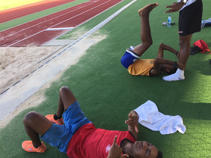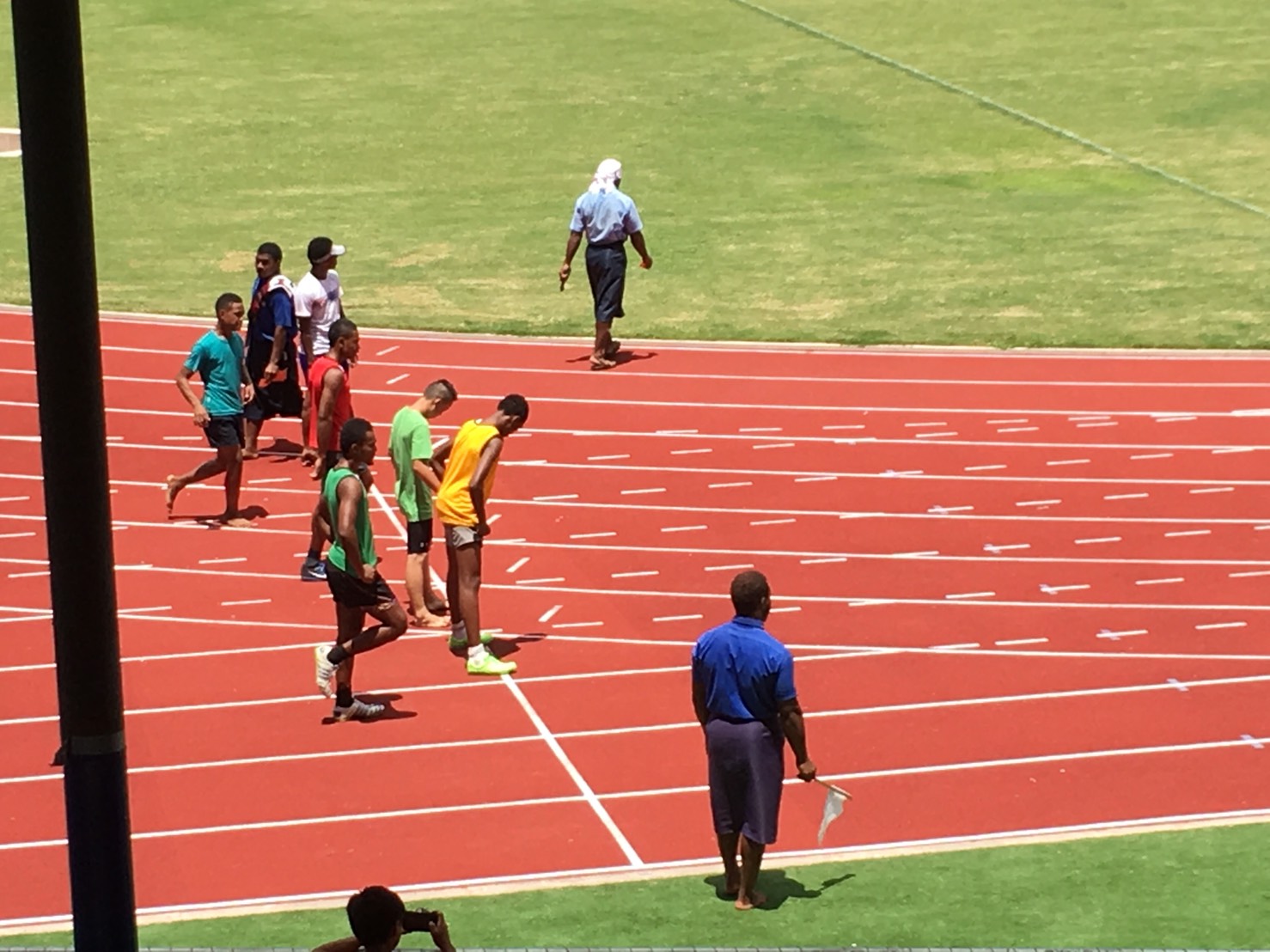 学校のみんなで練習のためにチャーチルパークという大きな陸上競技場に行きました。ローカルの友達数名と話していたら、ティラクハイスクールという他校の学生に話しかけられ、一緒に練習をしたりしました。この写真は後日、その他校の友達と一緒に練習していたときの写真です。