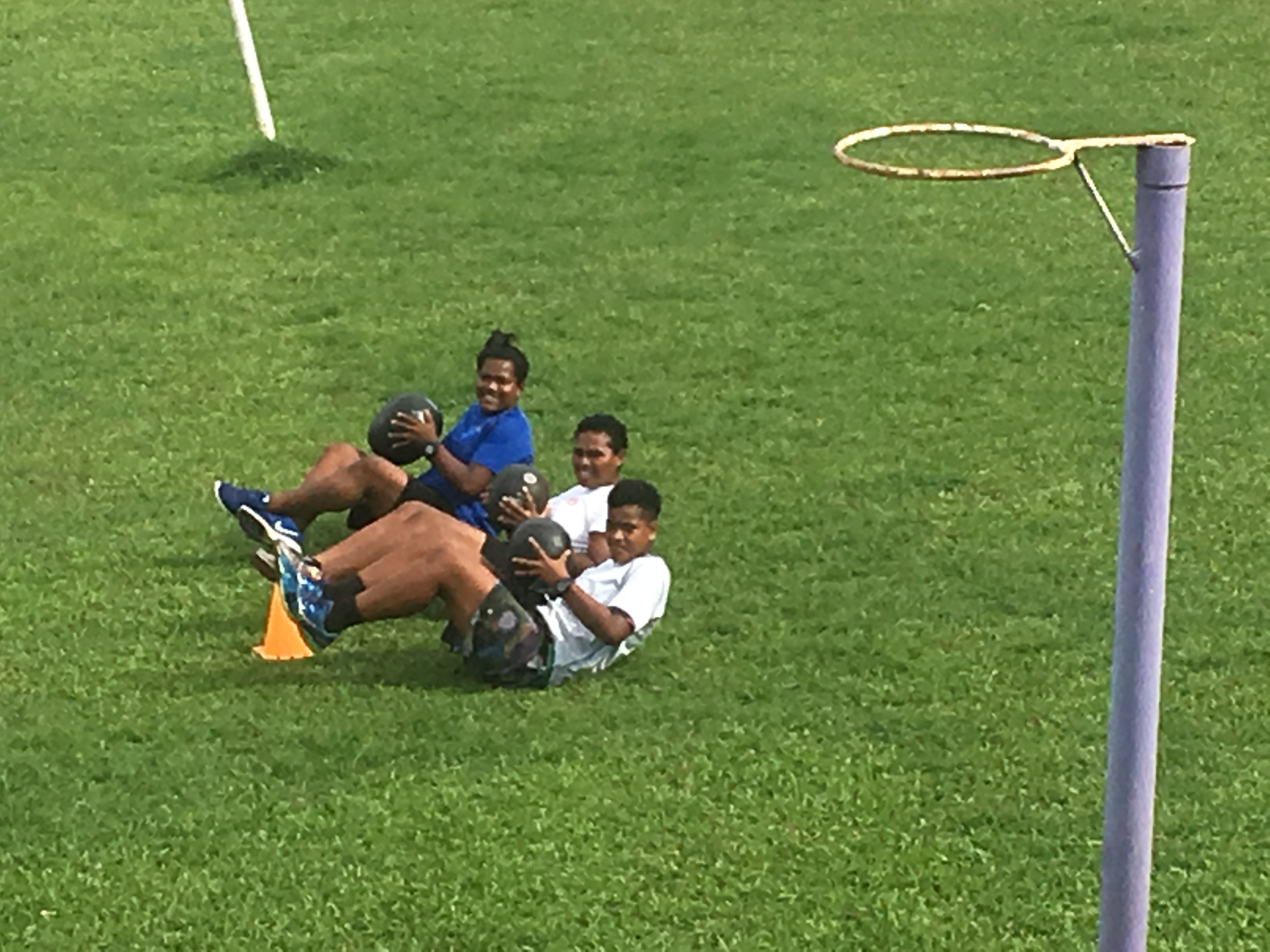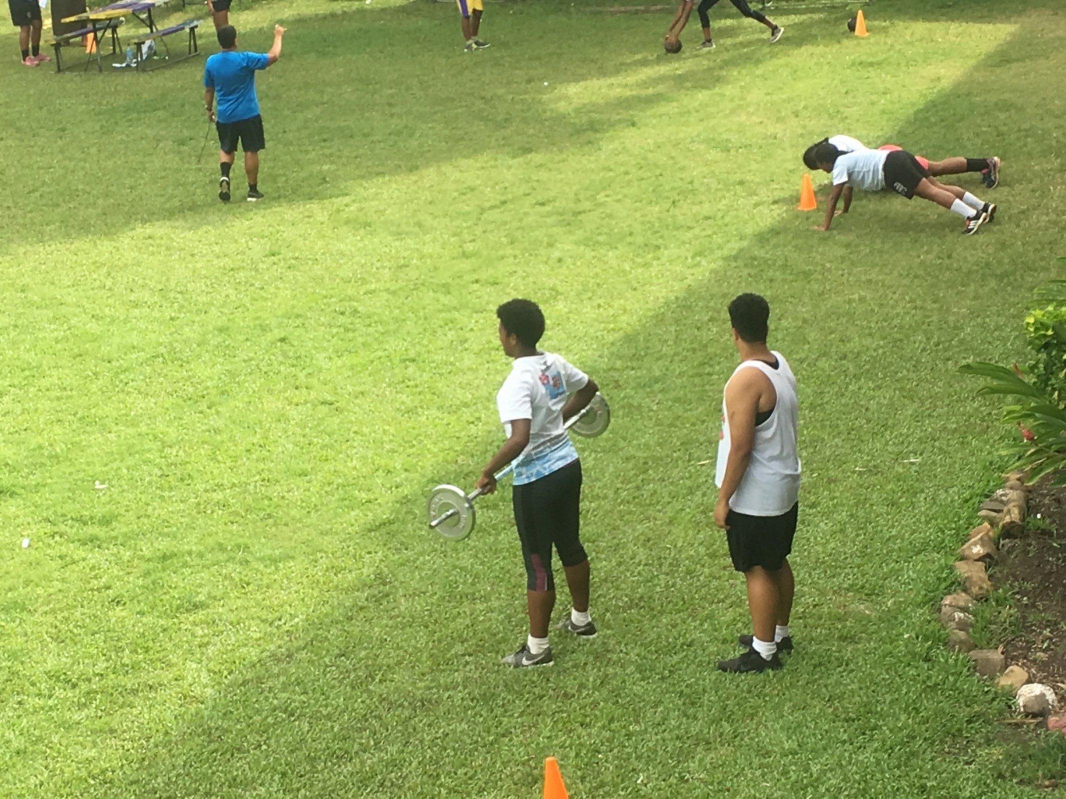 サーキットトレーニングをするたくましいローカル学生たち。