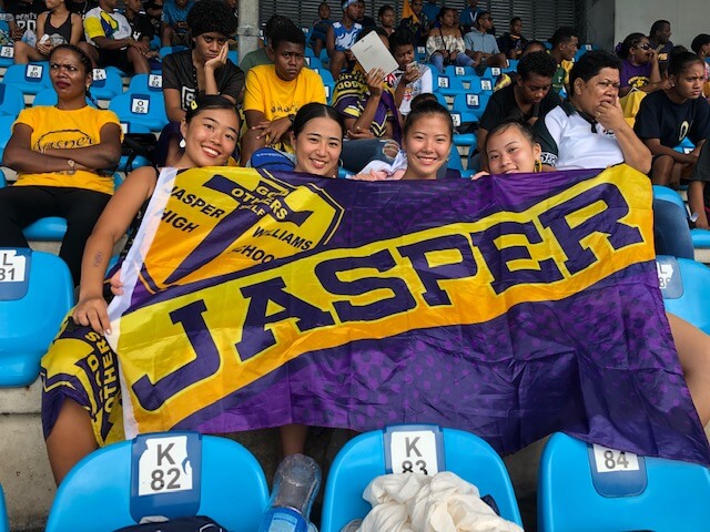 チアリーダー14名とサポーター6名、総勢20名の日本人学生がJasper 生の応援にスバまで遠征しました!
