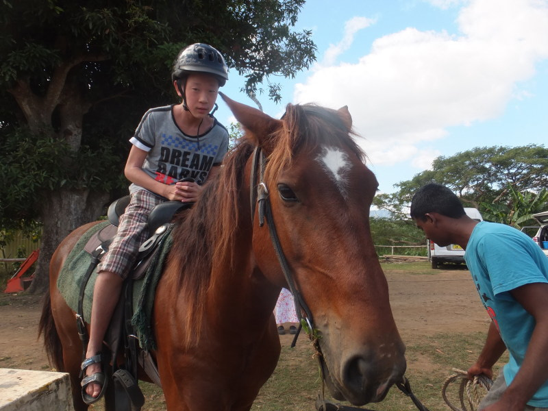 On Saturday [25/07] 22 of our OC students went for the Cultural Study Camp. They first visited Natalau village where a Sevusevu (traditional welcome ceremony) was presented to the village elders before we left for “The Garden of the Sleeping Giant.” Students enjoyed walking around the garden and looking at the different flowers. Next stop was the Horse Riding Track. Most of the students were excited to go on horse rides and they thoroughly enjoyed it. The highlight I have got to say was the Hot Mud Pool. From the smearing of their bodies with mud [The mud is believed to have healing power, it can cure anyone with skin disease], washing it away and the soothing dip in the naturally hot water.