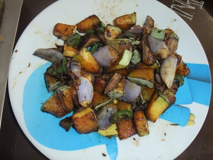 ナスとチリ、かぼちゃを使った野菜炒め