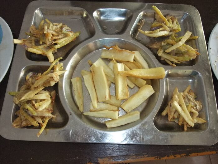 キャッサバチップスと掻き揚げ