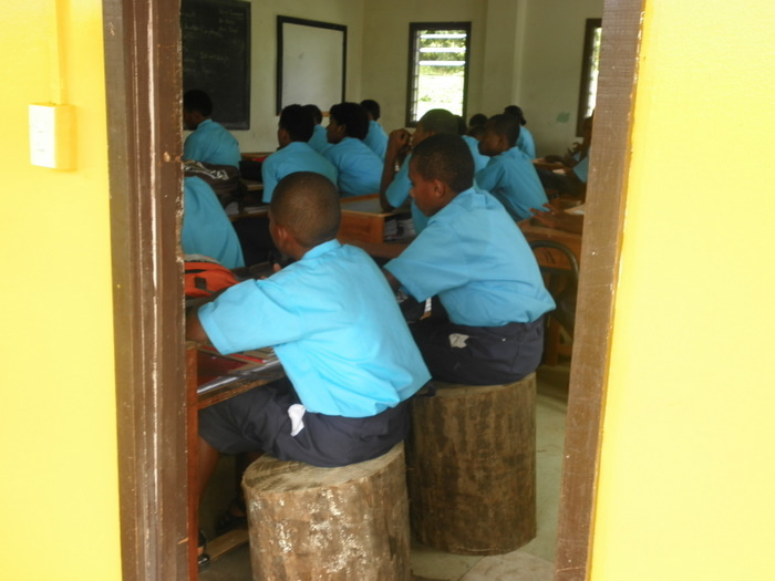 そうなんです、バプロではForm3(日本の中学3年生にあたる学年)の2クラスで、丸太を生徒用のイスとして使用していますこんな風景が見られるのもフィジーならではですね!!