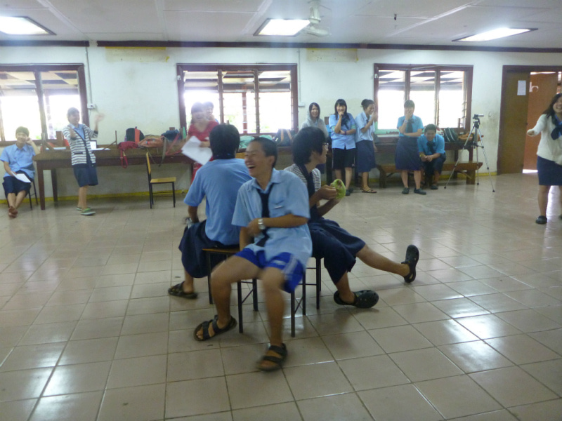 チームに分かれ、自己紹介ゲームで和んだ後、椅子取りゲーム