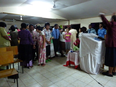参列した日本人の周りをフィジー人の皆さんが囲んでくださり、